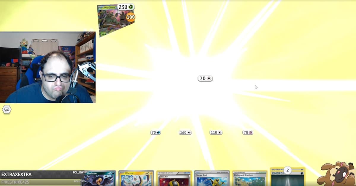 Recently, a competitive Pokemon TCG player shared a Twitch clip in which he reacts negatively to a sudden bright flash that exploded on the screen when Wo-Chien attacked with Forest Blast. The powerful move didn’t just knock out his live Pokemon but also seemed to cause him to wince in pain.